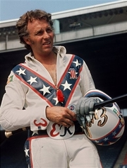 Evel Knievel, the red-white-and-blue-spangled motorcycle daredevil whose jumps over crazy obstacles including Greyhound buses, live sharks and Idaho's Snake River Canyon made him an international icon in the 1970s,